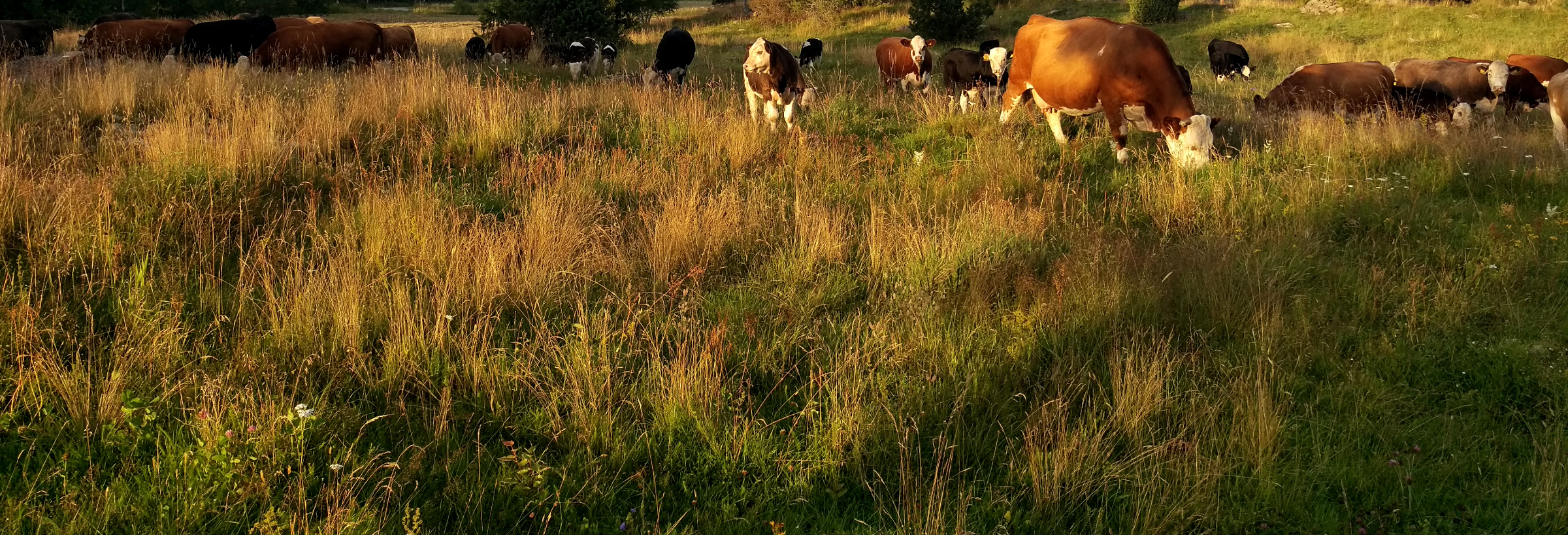 Korna på Södersjögården är korsningar mellan raserna Simmental, Herreford och Aberdeen angus. Besättningen består idag av ett trettiotal kor samt kalvar, kvigor och tvååriga tjurar. Djuren är avlade på att vara lugna, trevliga och på att ha en god hälsa genom hela livet. Korna ska också kunna kalva fritt i hagen och djuren ska ha bra ben och klövar. På Södersjögården går alla djuren ute under hela betesperioden. Korna har även möjlighet att gå ute i hagarna året om, med tillgång till ladugården vintertid.